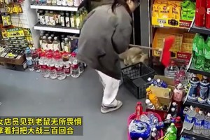 女店员见到老鼠无所畏惧 拿着扫把大战三百回合…