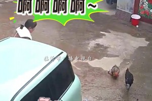 女子开车准备出门, 不慎碾到家里的老母鸡!!